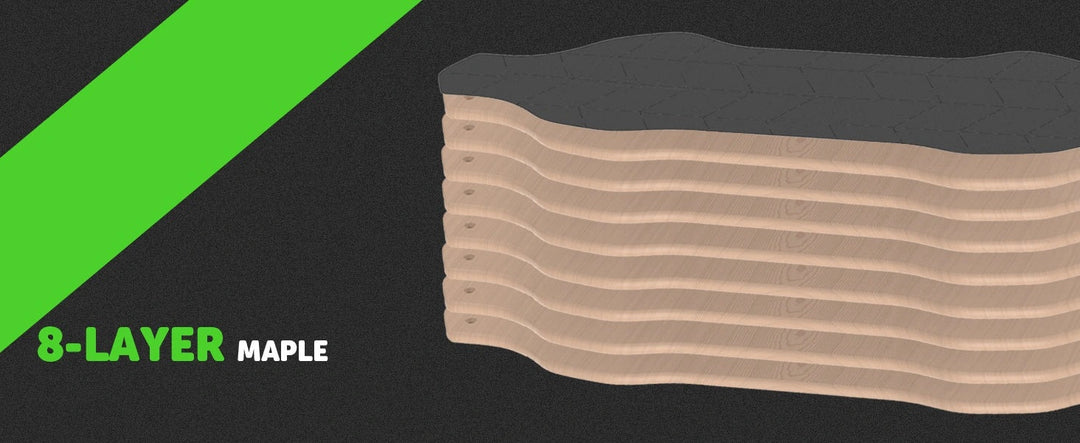 Durable multi-layer maple deck ensures excellent strength, flexibility, and shock absorption for a stable ride feel.