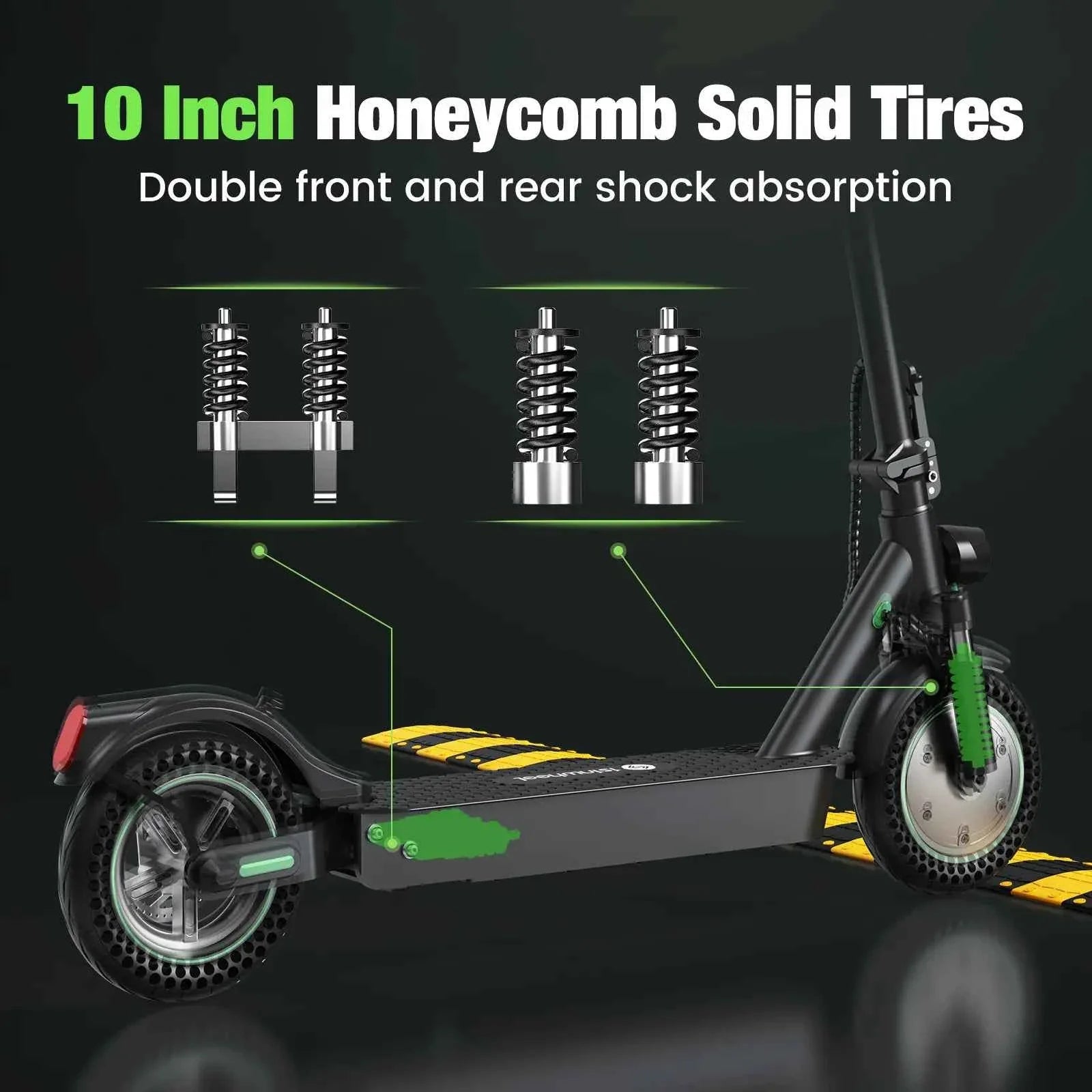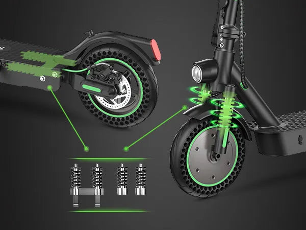 Front and rear shock absorbers smooth out bumps and ensure a comfortable ride on uneven city roads.